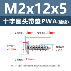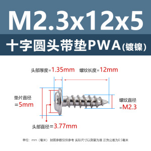 PWA2.3 * 12*5 (鉄ニッケル円頭パッド付きタッピングネジ)(500個)