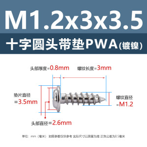 PWA1.2 * 3*3.5 (鉄ニッケル円頭パッド付きタッピングネジ)(500個)