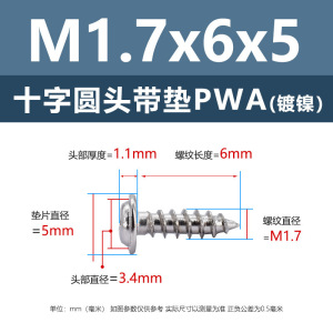 PWA1.7 * 6*5 (鉄ニッケル円頭パッド付きタッピングネジ)(500個)