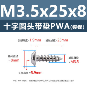 PWA3.5 * 25*8 (鉄ニッケル円頭パッド付きタッピングネジ)(200個)