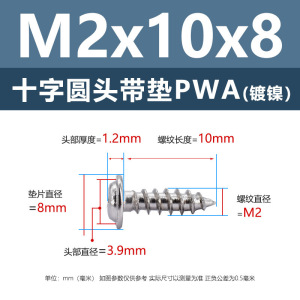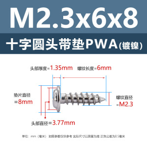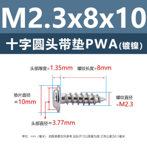 PWA2.3 * 10*8 (鉄ニッケル円頭パッド付きタッピングネジ)(200個)