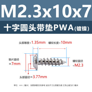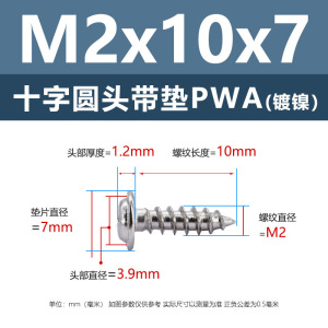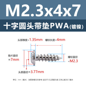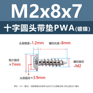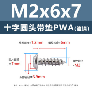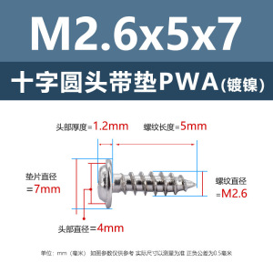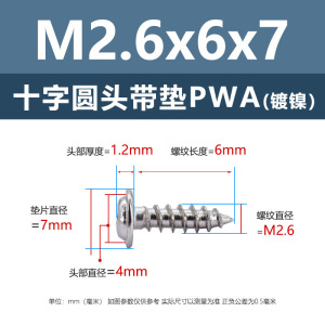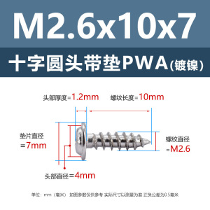 PWA2.6 * 7*7 (鉄ニッケル円頭パッド付きタッピングネジ)(200個)