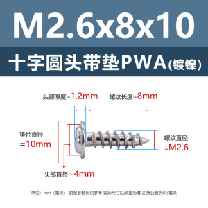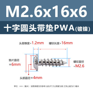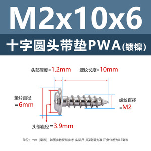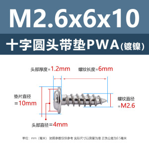 PWA2.6 * 6*10 (鉄ニッケル円頭パッド付きタッピングネジ)(200個)