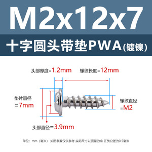 PWA2.3 * 12*7 (鉄ニッケル円頭パッド付きタッピングネジ)(200個)