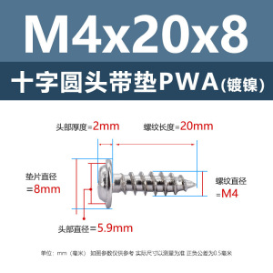PWA4 * 20*8 (鉄ニッケル円頭パッド付きタッピングネジ)(200個)