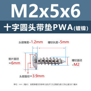PWA2.6 * 5*6 (鉄ニッケル円頭パッド付きタッピングネジ)(200個)