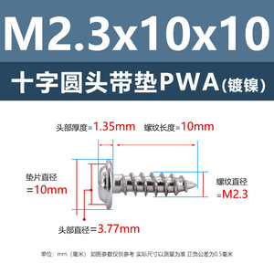 PWA2.3 * 10*10 (鉄ニッケル円頭パッド付きタッピングネジ)(200個)
