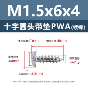 PWA1.5 * 6*4 (鉄ニッケル円頭パッド付きタッピングネジ)(500個)