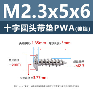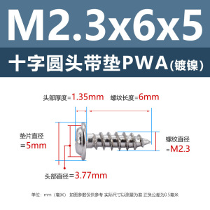 PWA2.3 * 6*5 (鉄ニッケル円頭パッド付きタッピングネジ)(500個)