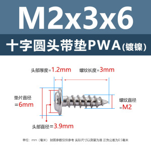 PWA2.6 * 6*6 (鉄ニッケル円頭パッド付きタッピングネジ)(200個)
