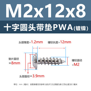 PWA2.3 * 12*8 (鉄ニッケル円頭パッド付きタッピングネジ)(200個)
