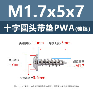 PWA1.7 * 5*7 (鉄ニッケル円頭パッド付きタッピングネジ)(500個)