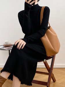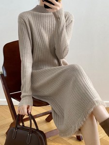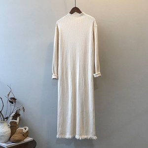 ニットのワンピースの女性秋冬の新型のピットのまっすぐな筒の中で長いタイプのゆったりした気質のセーターを掛けてひざを越えて底の長いスカートを打ちます。