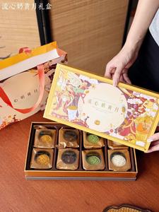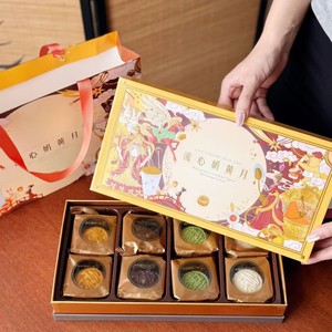 流心クリーム入り月餅ギフトボックス 8個入り 流心クリーム入り月餅 多種フレーバー 会社中秋節ギフト 工場卸売