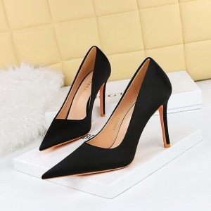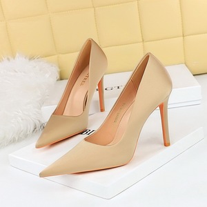 1983-2韓国版春と秋のファッションシンプルなサテンのハイヒールの細いヒールの浅い口の尖った女性靴の宴会のハイヒールの靴