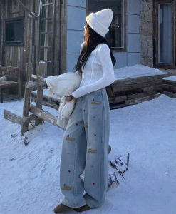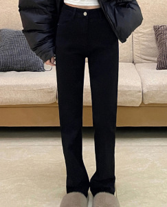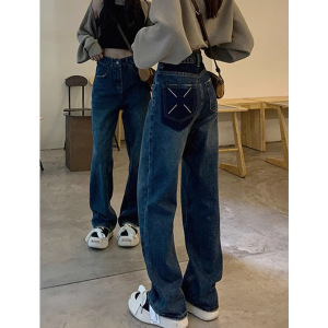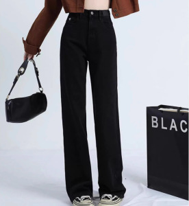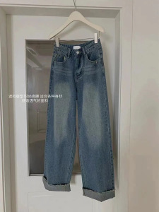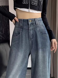 洋梨体型向け大きいサイズストレートジーンズ レディース 2025年秋新作 太め体型向けハイウエストゆったり細見えワイドパンツ