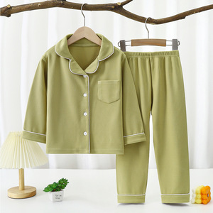 新しい子供の徳の絨毯のパジャマの中で大きい子供の家の服のスーツの男の子の宝の女性の宝の秋冬の長袖は家の服を襟をめくります