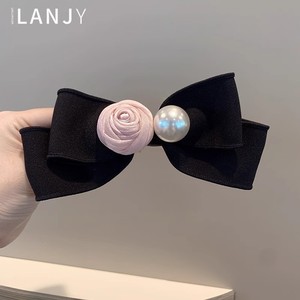 純欲 ~ ピンクの立体バラのリボンのヘアピンの側のスプリングクリップの女性の甘美な百合の後頭部の横のクリップ