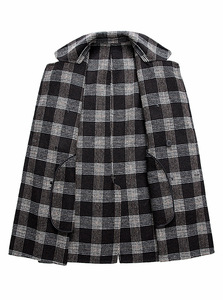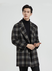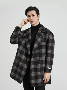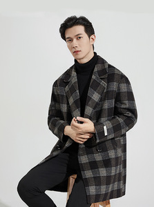 メンズチェック両面ウールコートコートミディアムロング2024新韓版春秋厚手ラシャ風コート