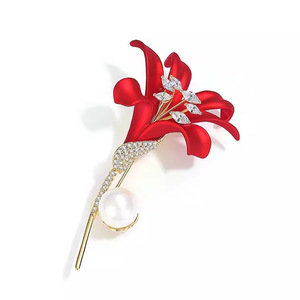 赤い木の綿のブローチの高級な女性の優雅な気質のスーツのピンの豪華な百合の胸の花のタキシードの装飾品