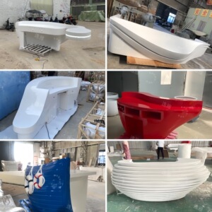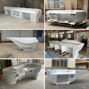 ガラス鋼のフロントの公共区の創意的なサービスデスクのバーの屋外のバーのデスクのコンピュータのデスクの個性的なデザインの展示台