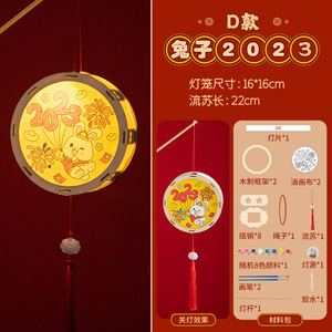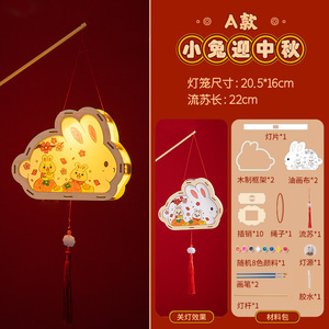 2025年中秋節手描きうさぎ提灯子供向け漫画DIY手作り素材パック持ち運び可能な発光提灯