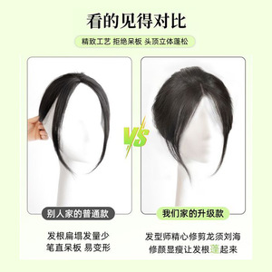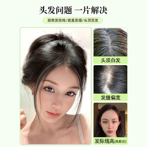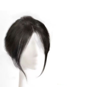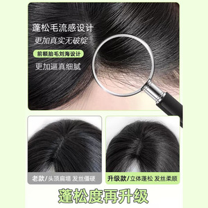 かつらの女性の頭の上に八の字の前髪が白くてふわふわしています。