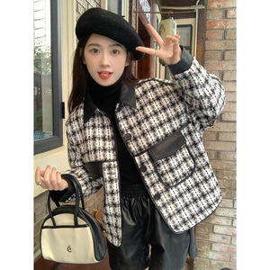 小香風千鳥格コート女性秋冬新作レトロなステッチデザイン感ショートコート長袖上着