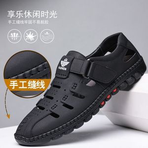 【本革牛革】サンダル男性本革抜き通気カジュアルソフト底滑り止め穴付き男性カジュアルサンダル