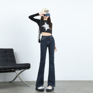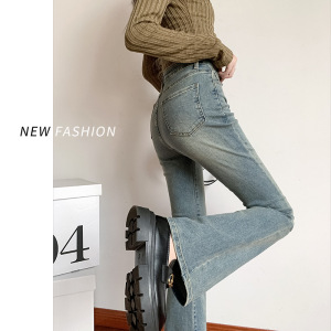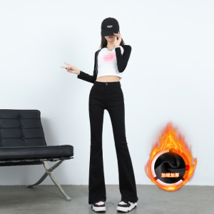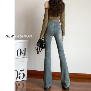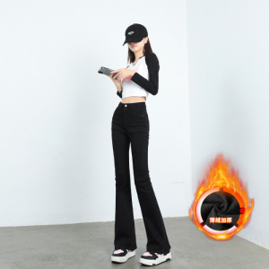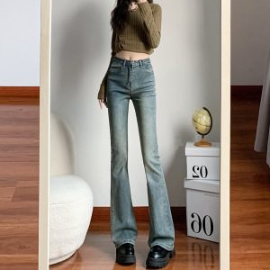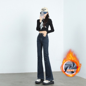 レトロなマイクロフレアデニムパンツ レディース 秋冬2025新作 小柄な方向け マキシパンツ 着痩せ効果 ハイウエスト 裏起毛 フレアパンツ