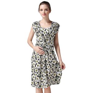 2025 夏花柄マタニティドレスミッドレングス V ネックコットンマタニティドレス産前産後外出授乳ドレス
