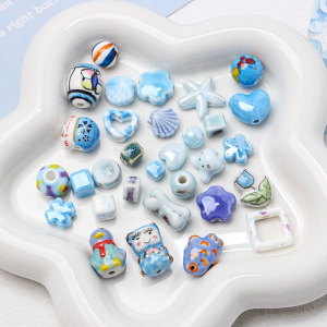 【小清新系】日系セラミックブルーシリーズ散珠DIY手作りビーズネックレスブレスレット隔珠材料