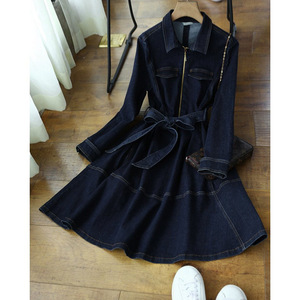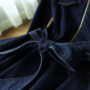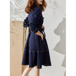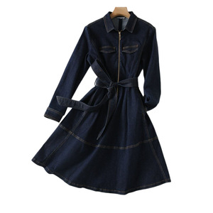 屏西デニムワンピース2023年新作秋感レトロ帯収腰減齢気質早秋スカート女
