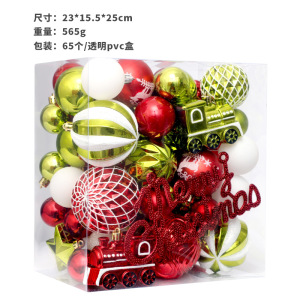 国境を越えた新製品クリスマス装飾品65個異形彩色プラスチッククリスマスボール礼箱クリスマスツリーペンダント