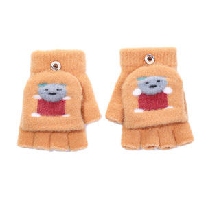 子供用手袋 冬用 保温 裏起毛 フリップカバー付き ハーフフィンガー ニット 男女兼用 ベビー 可愛い漫画柄 3-8歳 卸売