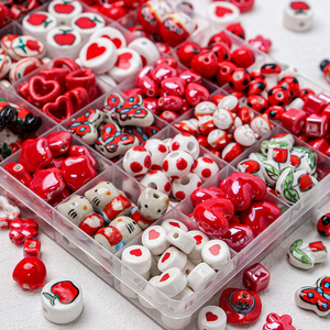 【火の赤い系】熱烈な火の赤い陶磁器の愛のDIYの手作りの数珠のブレスレットのネックレスのアクセサリーの部品