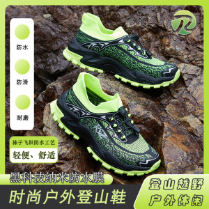 潤盛沢2023夏の新型アウトドア防水運動靴滑り止め耐磨耗登山靴男性飛織カジュアルシューズ