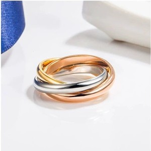 高版V金18k薔薇金三色カード家指輪彩金経典金ねじ黄白金欧米国境を越えた指輪