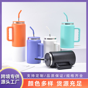 アマゾンの人気50オンスハンドル氷覇カップ車載大容量ストロー自動車カップ304ステンレス保温カップ