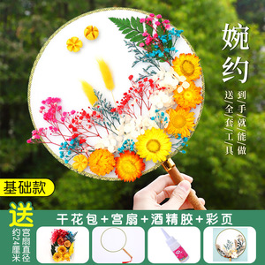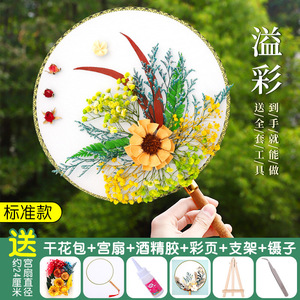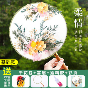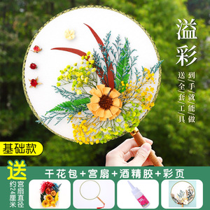 ドライフラワー扇子 DIY 素材パッケージ永遠の花古代スタイル宮殿扇子教師の日子供の親子手作りギフト扇子