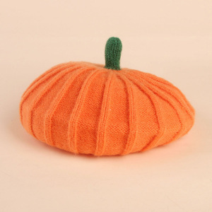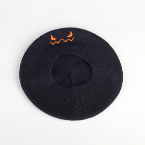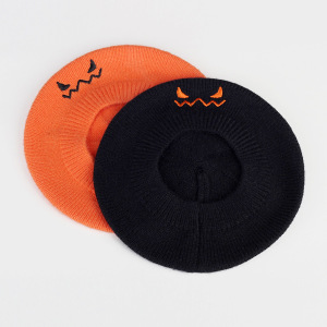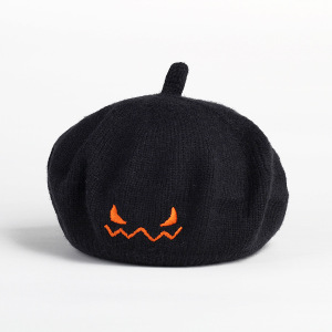 越境ハロウィンかぼちゃ帽子悪魔笑顔刺繍ニット子供秋冬モデル赤ちゃんベレー帽子