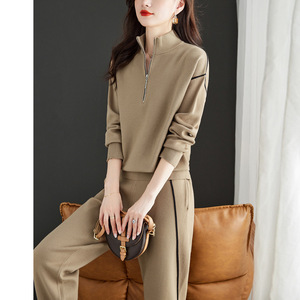 初秋新作レディースカジュアルスーツ2024秋ニットセーター若見えおしゃれスポーツパンツツーピースセット