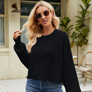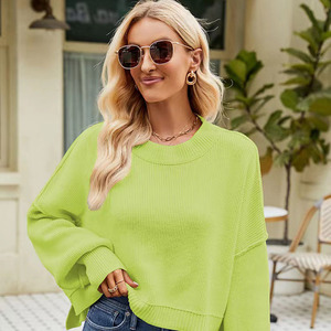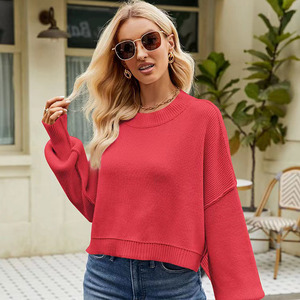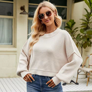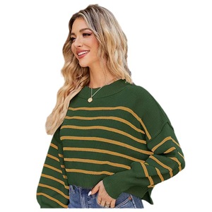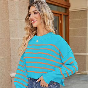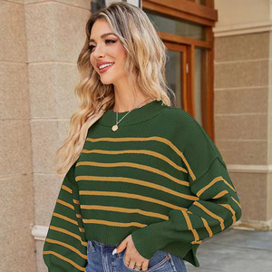 新型欧米ファッション長袖丸首セーター秋冬純色/ストライプ軽やかプルオーバーセーター女性