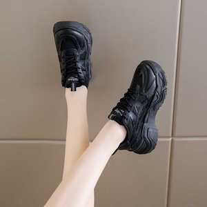 黒の厚い底のお父さんの靴の女性の通気性のネットの運動のカジュアルな靴の軽やかで柔らかい底の滑り止めの快適な仕事の靴の女性