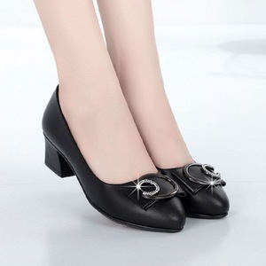 WD マザーズシューズ レディース シングルシューズ ソフトレザー ソフトソール 快適 ミドルヒール 浅口 ワークシューズ 春秋 中年向け 太ヒール 小さい革靴