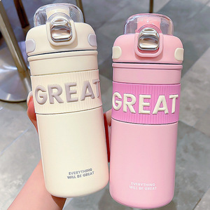 コップの男子学生はカップルのスポーツの保温カップの女子学生を飲んで簡単に女性の携帯します。