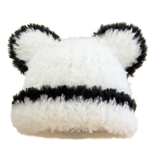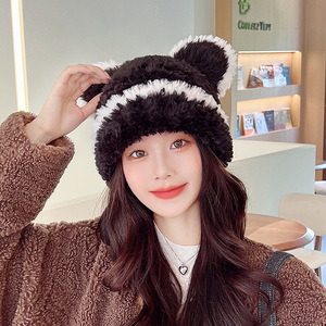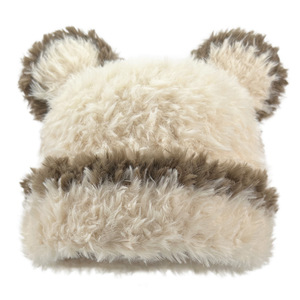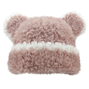 女性用冬のかわいいクマのウール帽子、韓国風の豪華で暖かい耳保護プルオーバー帽子、小顔効果のあるベルベット付きニット帽