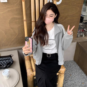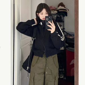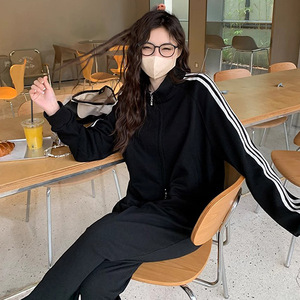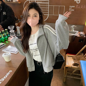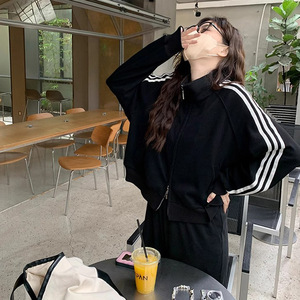 女性用スウェットシャツジャケット、秋のレトロな3ストライプ、2025春秋の新作、スタンドカラー、高級カーディガン、ショートスタイル、即墨スウェットシャツ