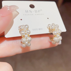 韓国式の甘くて可愛い気質の優雅な真珠の耳輪s925銀の針の小さい大衆の設計の高級な百合のネットの赤いイヤリング