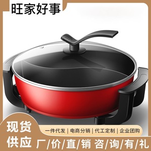 韓国式多機能オシドリ鍋大容量電熱鍋家庭用キッチン電気鍋は無煙で、電気煮鍋にくっつきません。
